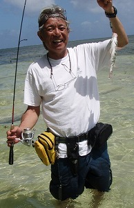 そして、午後からは、小田さんのリクエストで砂の島へ上陸して、ライトタックルゲームだ。川上さんは、GTをまだ釣っていないのでGT狙い。(私も釣ってませんが。。。何か?)