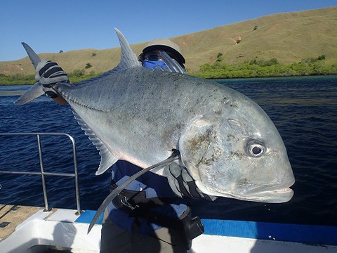 ギンガメアジ、ハタ、バラフエダイ、カマス、バラクーダ、カスミアジ、コバンザメ等々面白いように釣れました☆